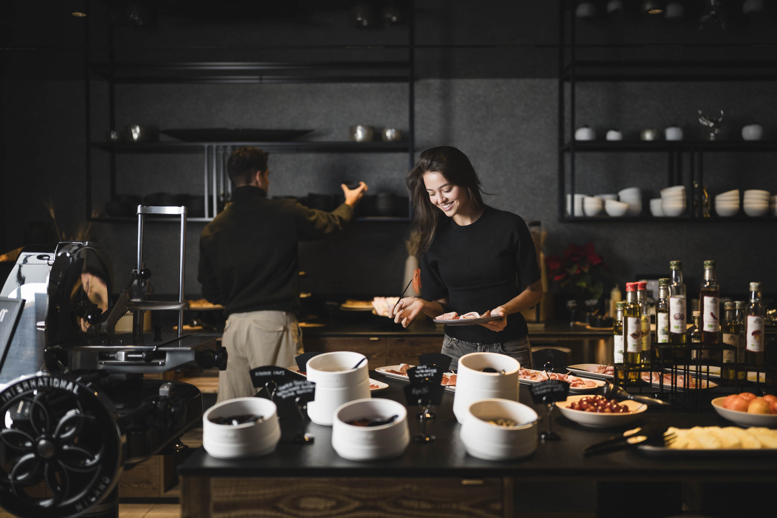 Entrate in un luogo dove l'accoglienza non è solo una parola. Il nostro ristorante vi accoglie con una luce calda, delicatamente soffusa, e un'atmosfera che invita al relax e al piacere. Legno, tessuti e materiali naturali della regione creano un ambiente accogliente e autentico, uno spazio che rasserena l'anima. Le nostre piccole alcove e l'accogliente salottino offrono la giusta dose di privacy per godervi la serata indisturbati. Qui troverete pace, intimità e, allo stesso tempo, il calore vibrante di un luogo che rende ogni momento speciale. Un luogo dove non si cena solo, ma si acquisisce anche un esperienza.
